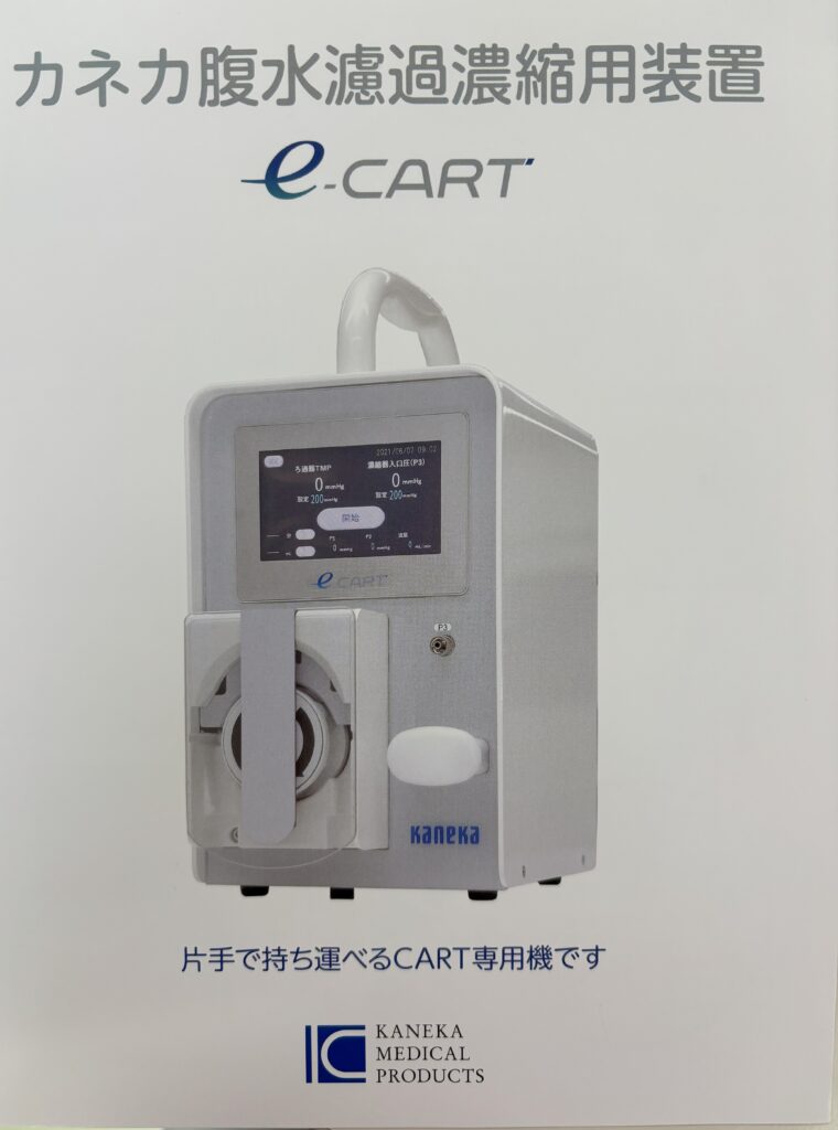 おなかに針を刺してたまった腹水をぬき、細菌、がん細胞や血球成分をとりのぞき、アルブミンなどの有用成分が濃縮された腹水を点滴で戻します。