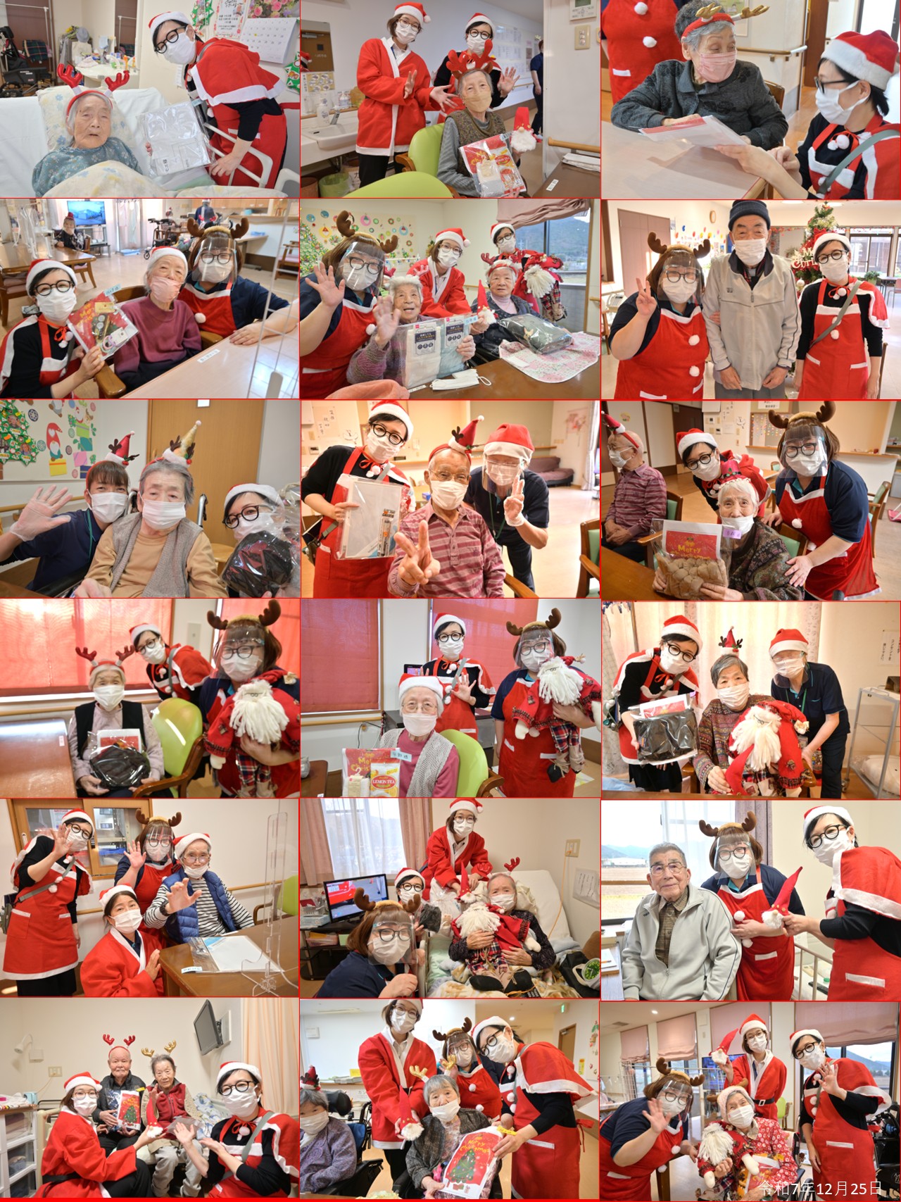 当ホームに来るサンタはいつも可愛い!?入居者の皆様にプレゼントと記念撮影。いくつになってもクリスマスはテンションが上がります!