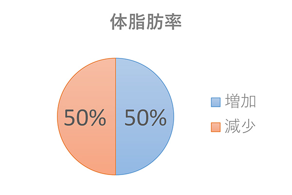 加圧トレーニング実施者の方が、体脂肪の減少者が多い
