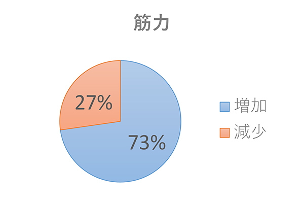 加圧トレーニング実施者の方が、筋力増加者が多い